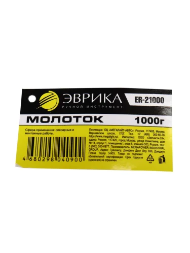 | Наименование | Молоток 1.000кг слесарный фибергласовая ручка ЭВРИКА в Мурманске Мурманской области |