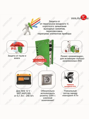 | Наименование | Устройство зарядное 12V 10А 240Ач 220V (автомат) пыле-влагозащита IP 65 АВТОЭЛЕКТРИКА АВТОЭЛЕКТРИКА т1060 в Мурманске Мурманской области |